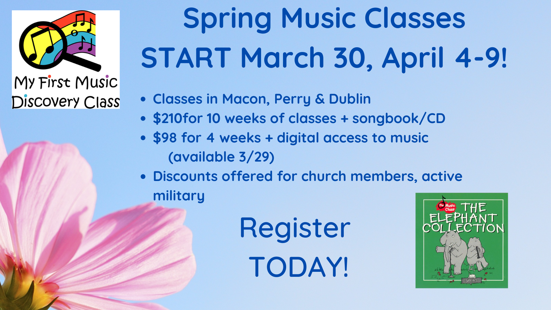 Mrs. Erica is also available for birthday parties and family gatherings. Please email for more information: erica@musicdiscoveryclass.com.